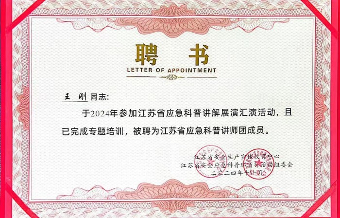 江苏省应急科普讲解展演汇演活动由江苏省安全生产宣传教育中心与江苏省安全应急科普环省活动组委会联合举办,此次活动为期两天,涵盖应急科普讲解集训及展演汇演两大重要环节。在集训期间,王刚全身心投入,深入学习应急科普知识,不断磨砺讲解技巧。他与来自全省各地的优秀学员交流互动,汲取多元经验,实现自我能力的快速提升。