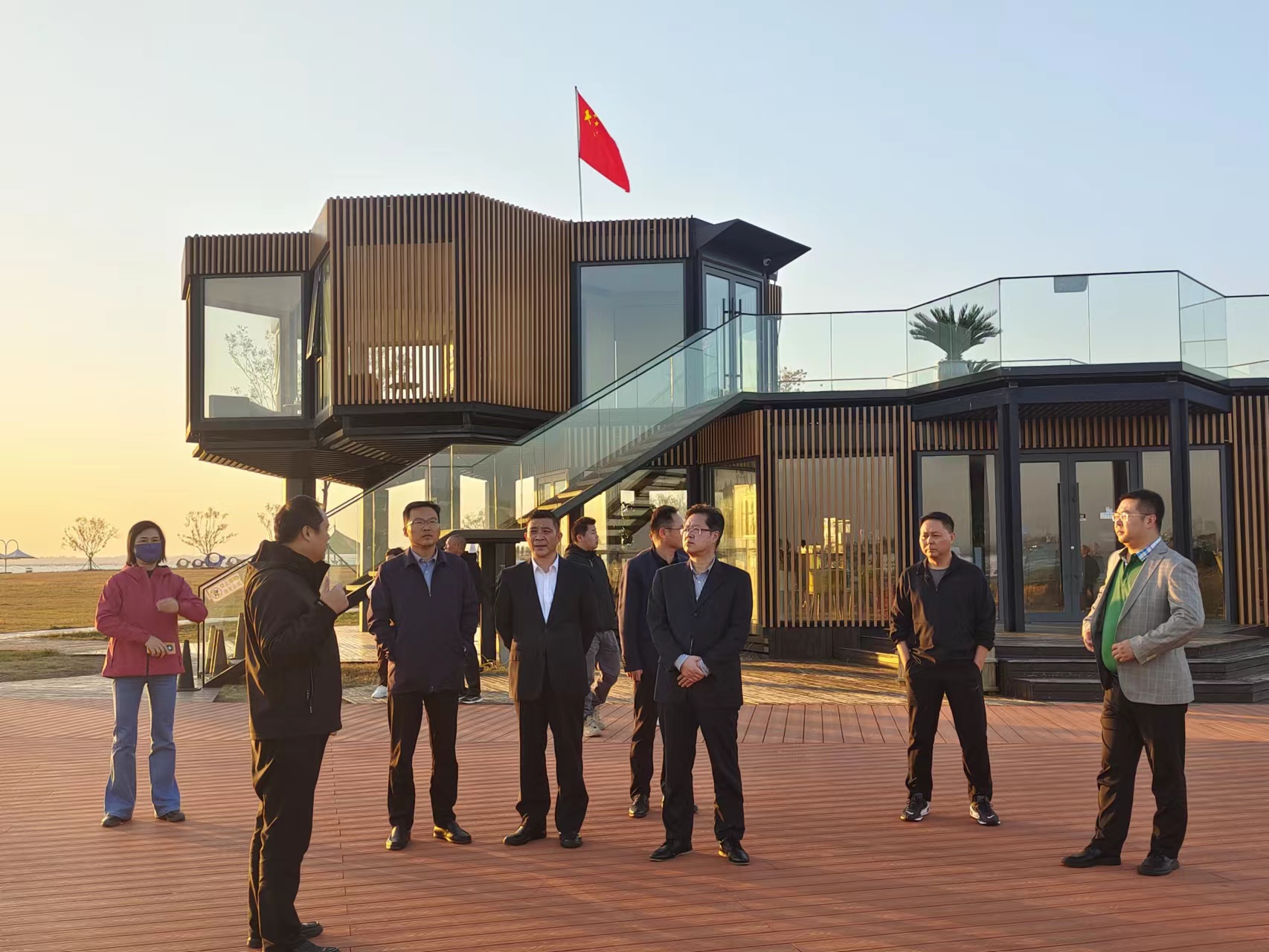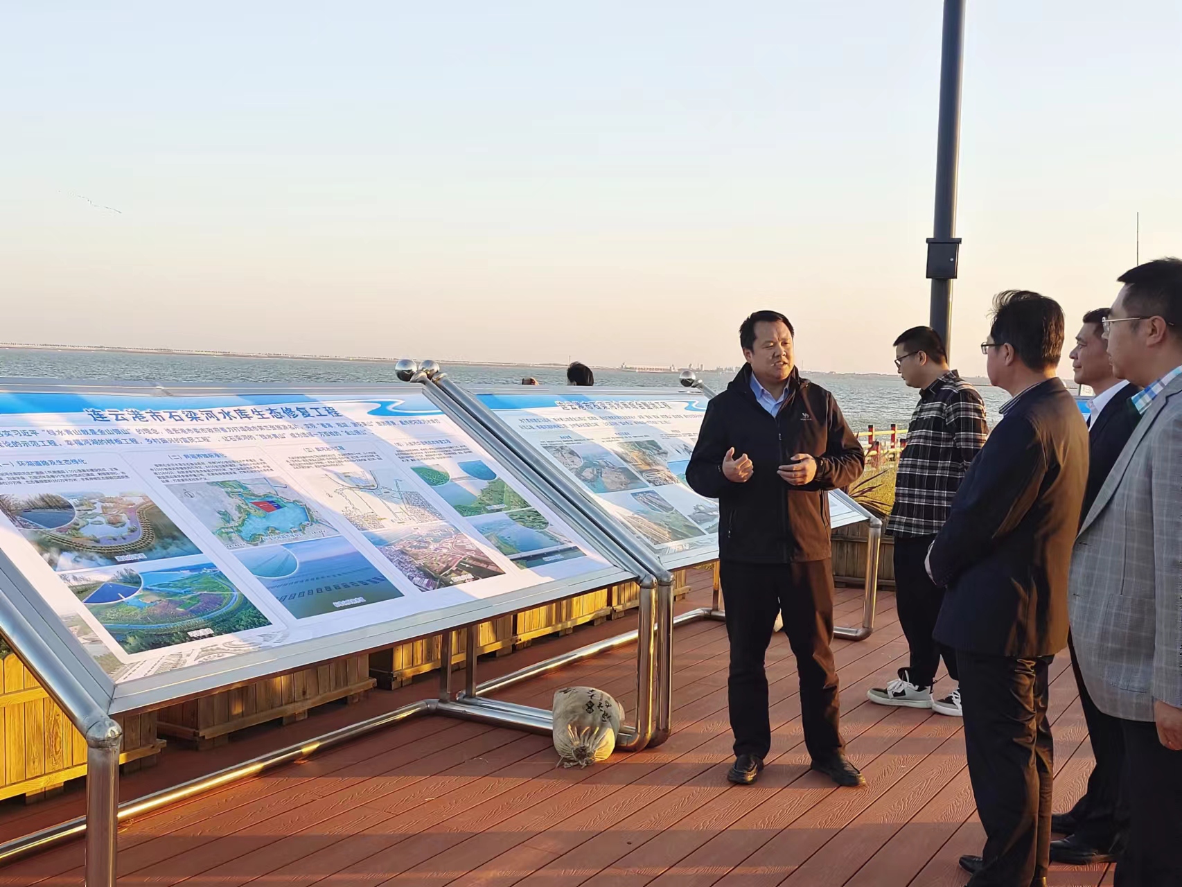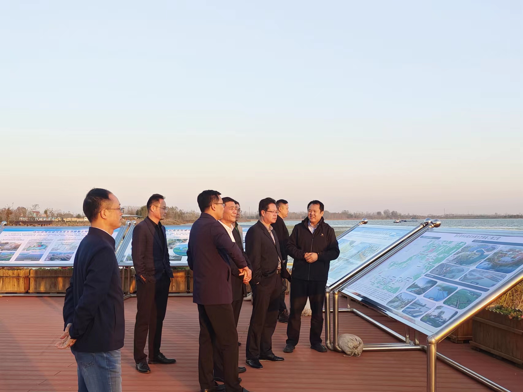 2023年11月8日丹阳市人大一行到石梁河水库生态修复工程渔人码头示范点观摩调研石梁河水库生态修复工程。赣榆区党委及石梁河水库生态修复工程建设处人员陪同调研。