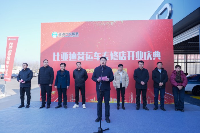 王兴代表比亚迪厂家致辞,他表示,将以连云港为新起点,持续完善服务,吸引更多客户选择比亚迪,为城市绿色交通贡献更大力量。高波在致辞中对比亚迪营运车专修店寄予厚望。他表示,凭借专业技术和优质服务,专修店必将在比亚迪营运车维修领域树立卓越品牌形象,为城市交通的绿色、高效发展以及政府公务用车提供有力保障。