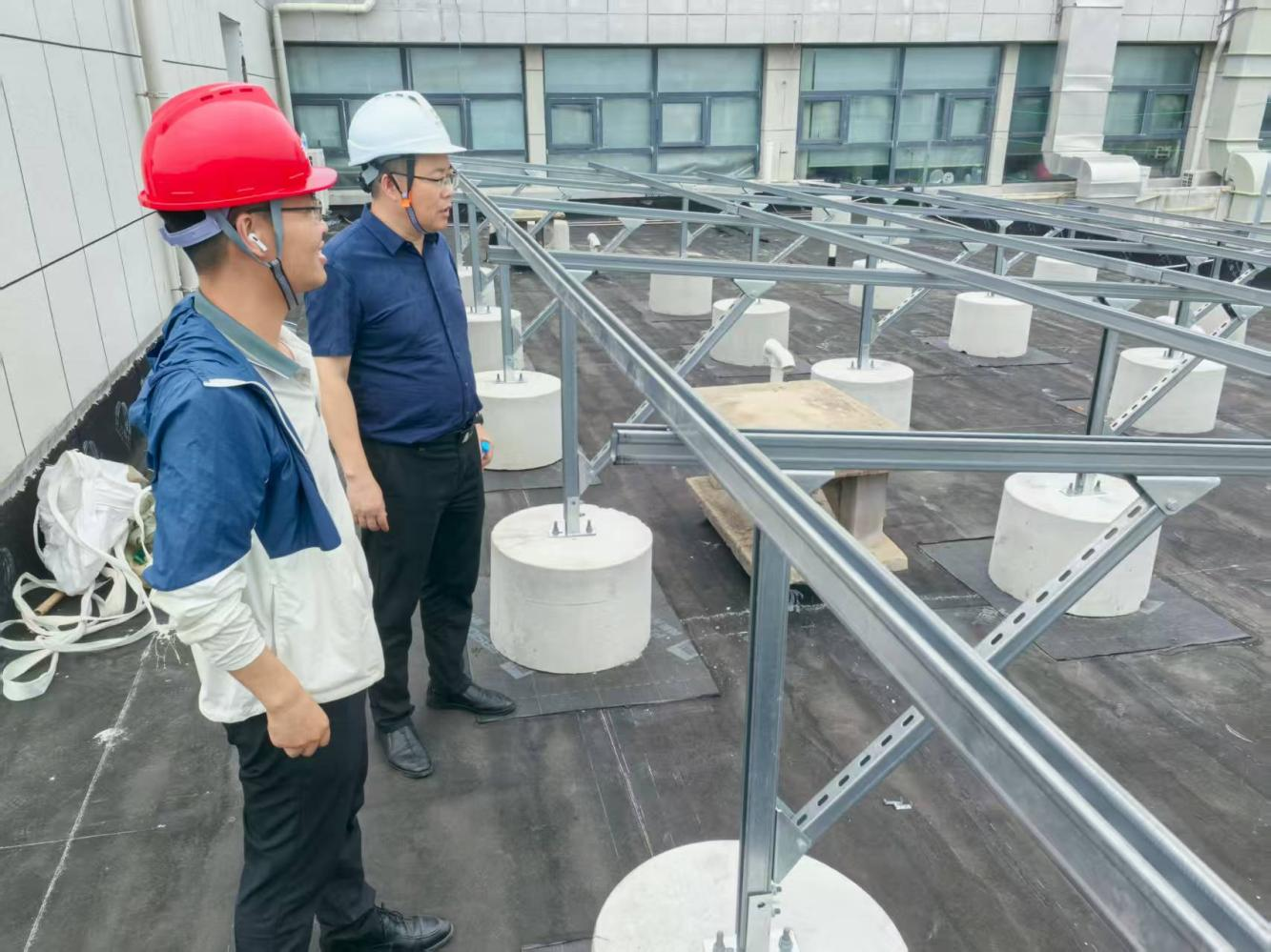为进一步规范光伏发电项目建设管理,全面消除安全隐患,促进光伏项目顺利推进,近日,明茂公司副总经理王平率安全、运维等部门,对市场监督管理局屋顶光伏项目开展专项安全检查,加强项目施工安全管理,确保安全完工。