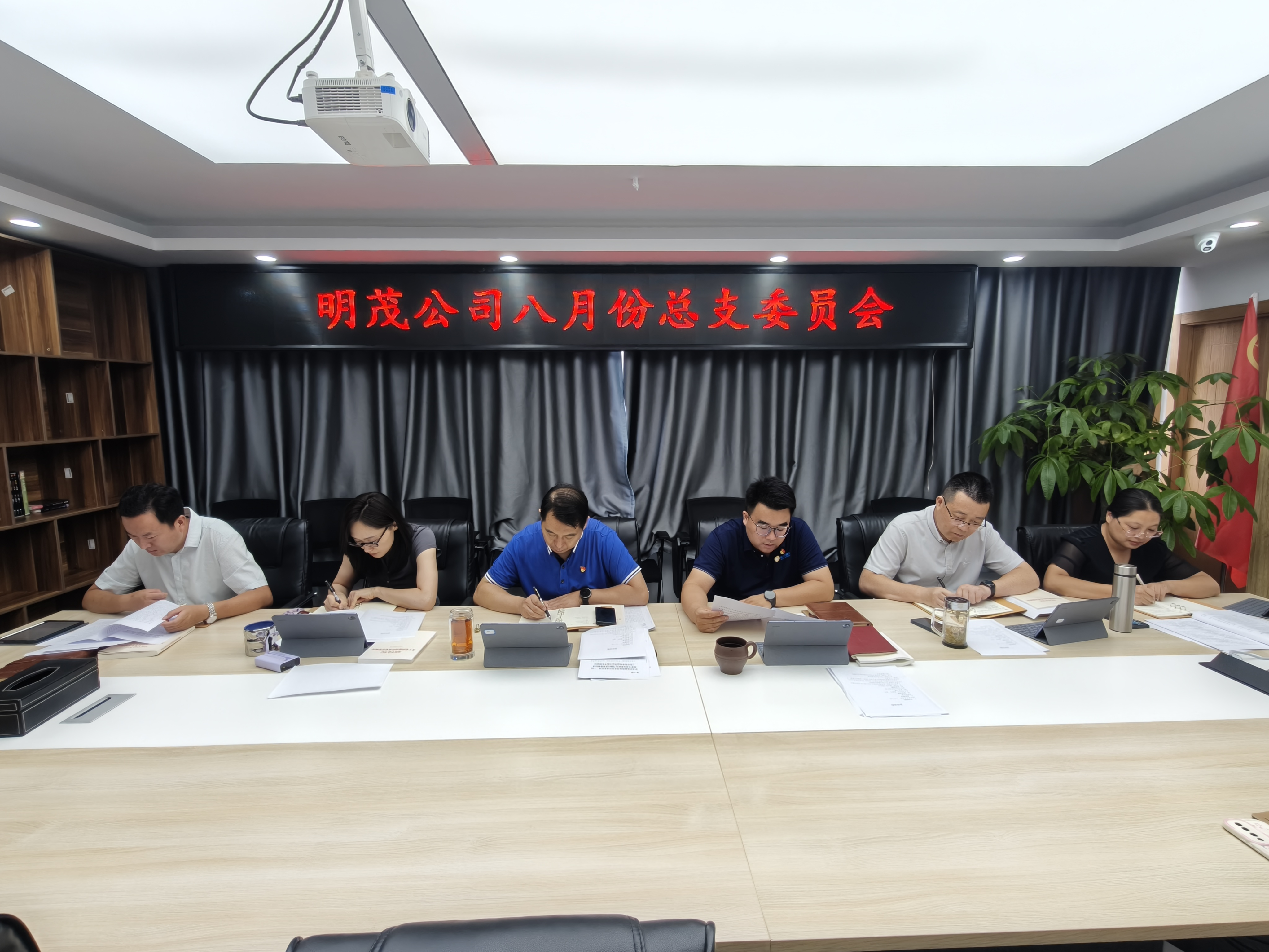 8月8日下午,明茂公司党总支召开8月份总支委员会,传达学习中共中央政治局会议精神,部署贯彻落实工作。会议由公司党总支书记、董事长袁军同志主持召开。明茂公司领导班子成员参加会议、相关部门负责人列席会议。