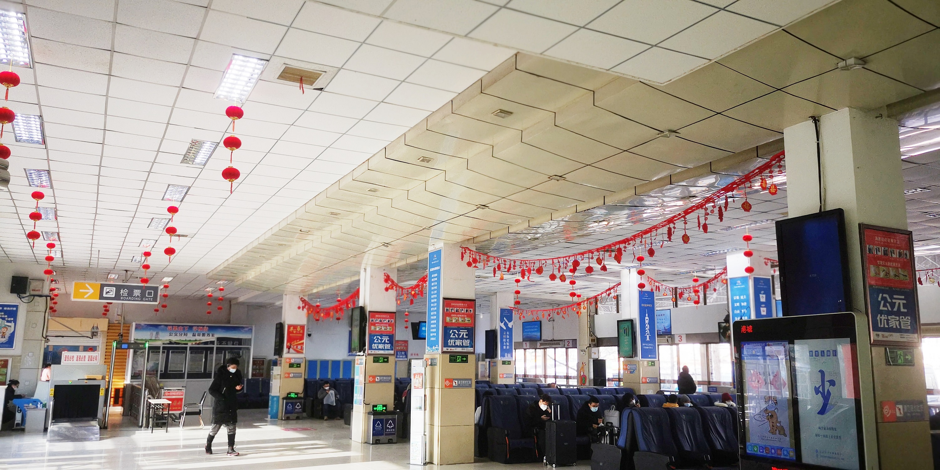 一盏盏火红灯笼高高悬挂,随处可见关于新岁的红色,是年味在向新春招手。进站大厅内的新春交通海报,站场通道玻璃上的祥云贴花,出站口的春节祝福语,雷锋车驿站的新春布置等各式各样的迎春装饰,打造了充满年味的幸福空间。