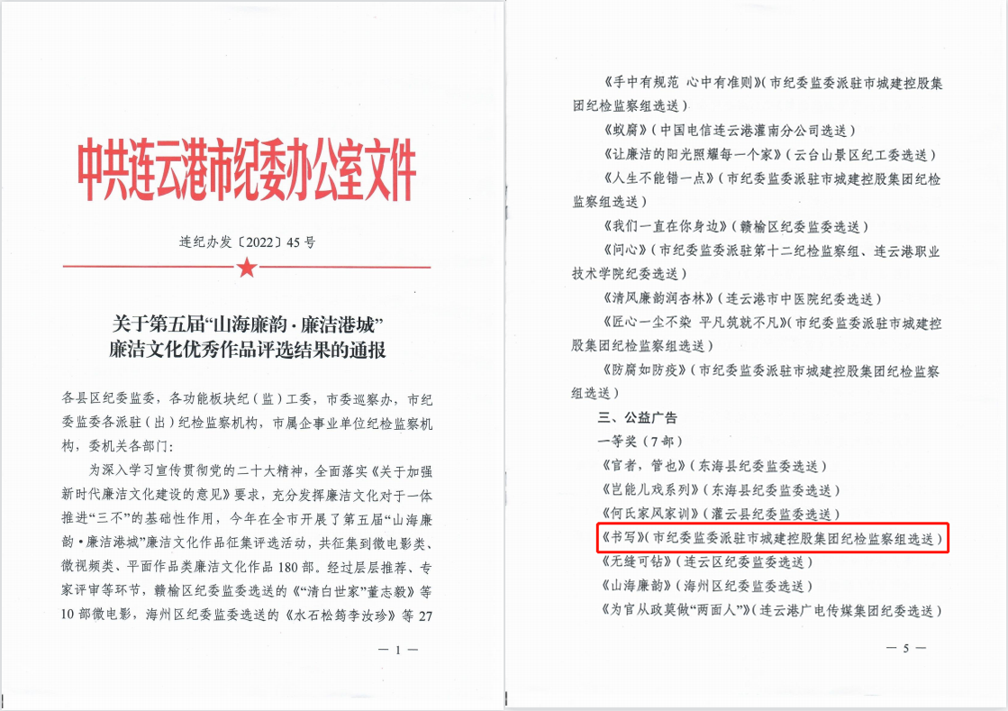 为深入学习宣传贯彻党的二十大精神,全面落实《关于加强新时代廉洁文化建设的意见》要求,今年连云港市纪委在全市开展了第五届“山海廉韵·廉洁港城”廉洁文化作品征集评选活动。公交易游app最新版下载,易游(中国)积极组织职工投递作品参选,其中王琰创作的平面作品《书写》荣获公益广告类一等奖。