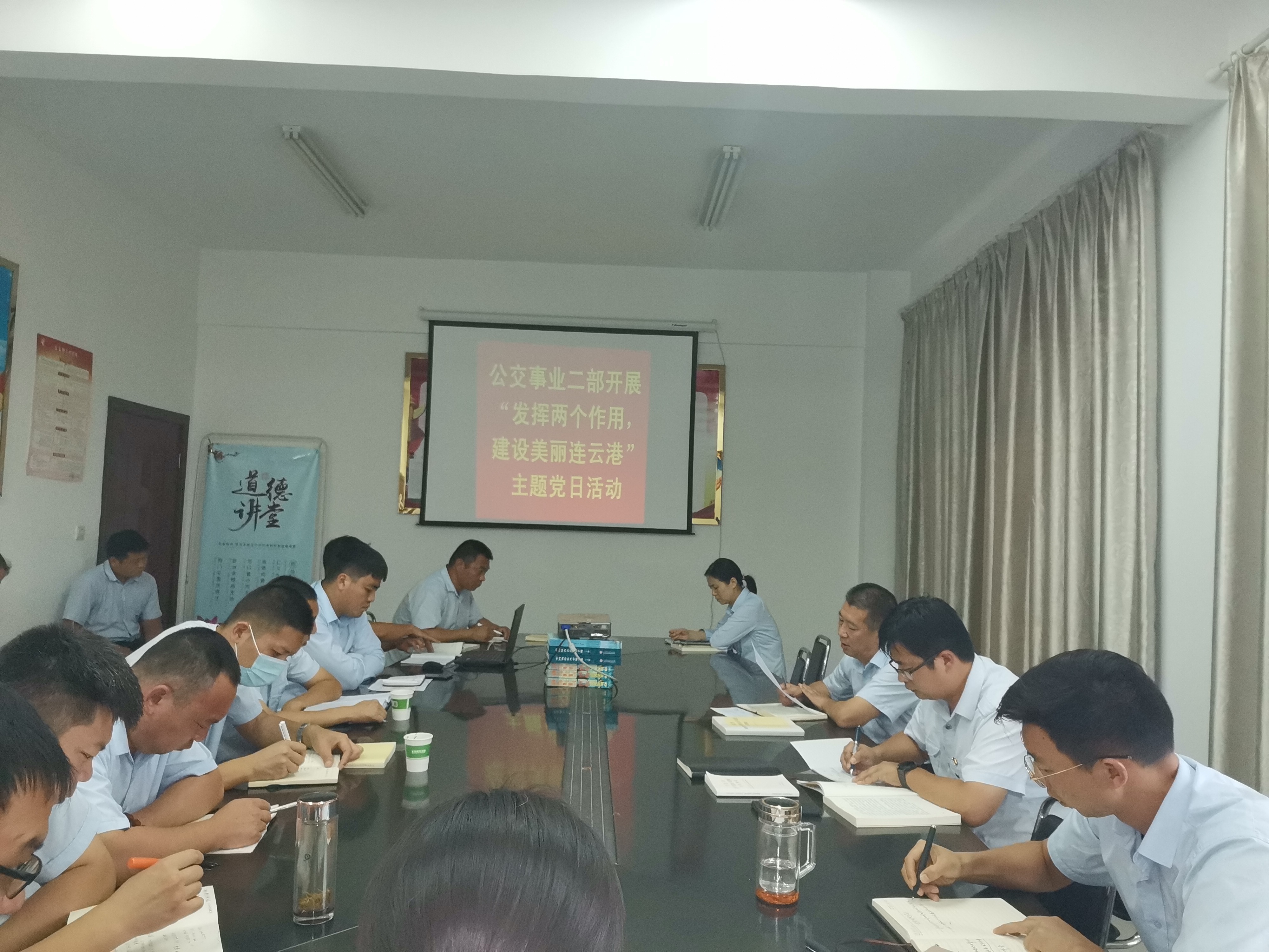 此次主题党日分两部分举行。一是8月14日,利用每月固定学习日时间,支部书记、经理王浩带领党员、干部、入党积极分子,专题开展“我为美丽连云港建设做什么”感悟交流活动。王浩要求,当前,我市创建全国文明城市已经进入最后攻坚冲刺阶段,党员、干部要充分发挥先锋模范作用,结合工作特点,立足工作岗位,全力以赴打好创建全国文明城市攻坚战。二是8月14日—8月17日,党员、干部结合各自岗位,根据创文点位要求,顶着高温对车辆、场站、驾驶员逐一排查,开展义务拔草活动,全面消除创文工作死角,为创文工作奉献自己的力量。