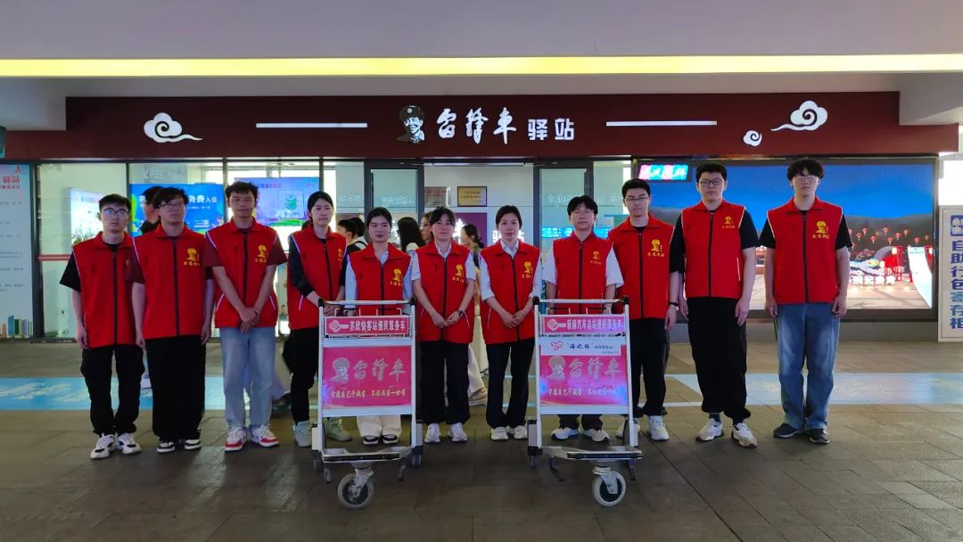 为保障志愿服务顺利开展,“雷锋车”组为志愿者购买人身保险,协调通勤车辆,并结合学生课程安排和服务意愿,科学规划服务时段与岗位。在驿站工作人员的带领下,大学生志愿者们迅速投入工作,主动为携带大件行李的旅客提供搬运协助,耐心解答交通换乘、旅游景点等咨询,热情推荐港城特色打卡点,还特别关注老幼病残孕等特殊群体,提供全程护送乘车服务。